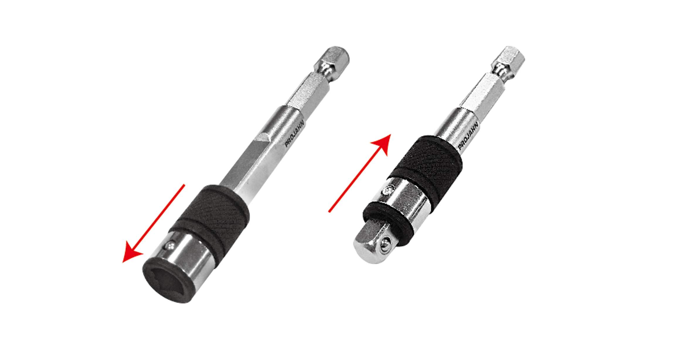 - Durch Verschieben der Hülse als Bithalter oder Steckschlüsseladapter verwendbar