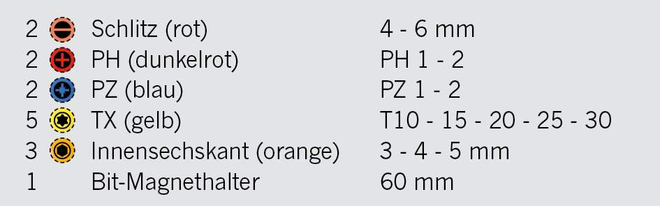 - Bits aus hochwertigem S2-Spezialstahl gefertigt, ideal für den professionellen Anwender geeignet