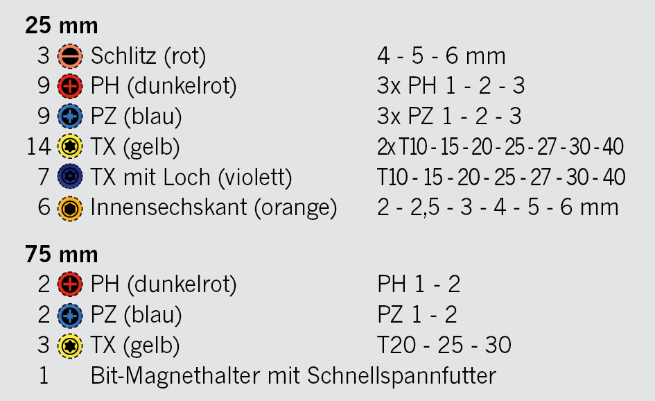 - Bits aus hochwertigem S2-Spezialstahl gefertigt, ideal für den professionellen Anwender geeignet