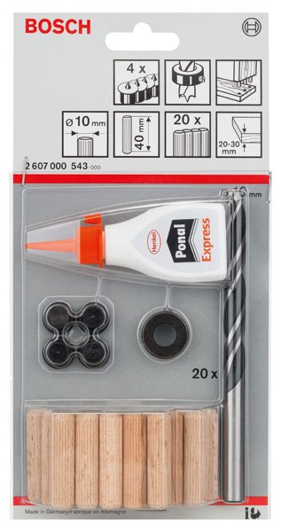 Das Holzdübel-Set ist eine praktische Lösung für das Setzen von Dübeln in Holz. Es enthält einen Holzspiralbohrer, einen Tiefenanschlag, Dübelsetzer, Profilholzdübel und Holzleim. Das Set ist gebrauchsfertig und enthält das gesamte Zubehör, das für eine effiziente Arbeit in Weich- und Hartholz erforderlich ist. Der Holzspiralbohrer besitzt eine Zentrierspitze und Eckfräser für ausrissfreie Bohrlöcher und glatt gebohrte Lochwände.