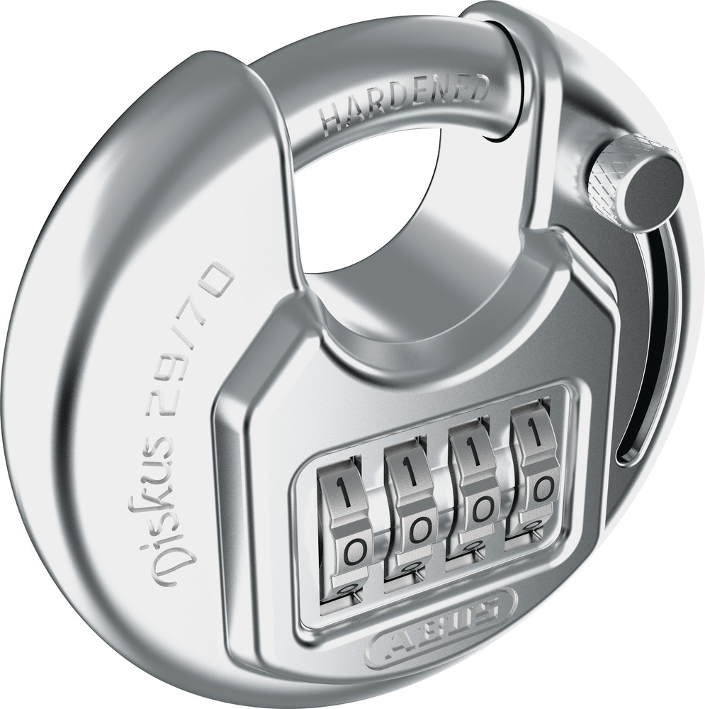 SCHLÜSSELLOSE ABSICHERUNG Hinter Kellertüren, Gartentoren oder in Schuppen befinden sich nicht selten Wertgegenstände. Um diese in Sicherheit zu wissen, eignet sich das vielseitig einsetzbare Diskus® Combo 29/70. Die Sorge vor Schlüsselverlust war gestern: Das Vorhängeschloss lässt sich mit einem individuell einstellbaren, 4-stelligen Zahlencode öffnen. Die Zahlenwalzen sind so eng verbaut, dass kein Aufbruchswerkzeug dazwischen passt und auch die runde Form in Kombination mit der schmalen Bügelöffnung macht es Dieben mit Einbruchswerkzeugen nahezu unmöglich eine Angriffsfläche zu finden. Dank des robusten Edelstahlgehäuses ist das Diskus® Combo 29/70 kein „Schön-Wetter-Schloss“ – es trotzt Kälte, Regen und Schnee und bietet somit eine gute Absicherung für den Außen- und Inneneinsatz. Tipp: Die Überfalle 140 ist die perfekte Ergänzung zum Diskus®.