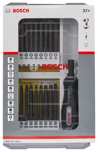 37-teiliges Set mit Schrauberbits und Griff, PH, PZ, SL, TH, TQ, H, TW, SP, R und Bithalter. Für Bohrmaschinen/Schrauber