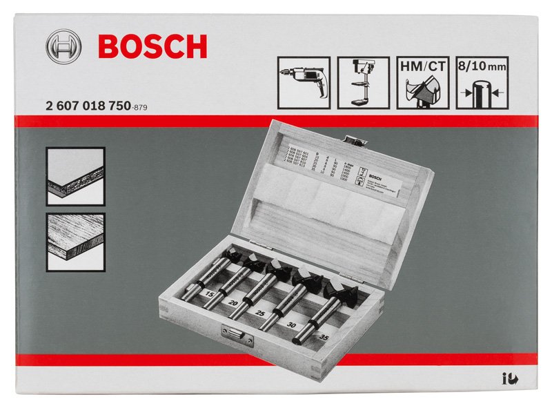 5-tlg. Scharnierlochbohrer-Set, Carbide, 15–35 mm