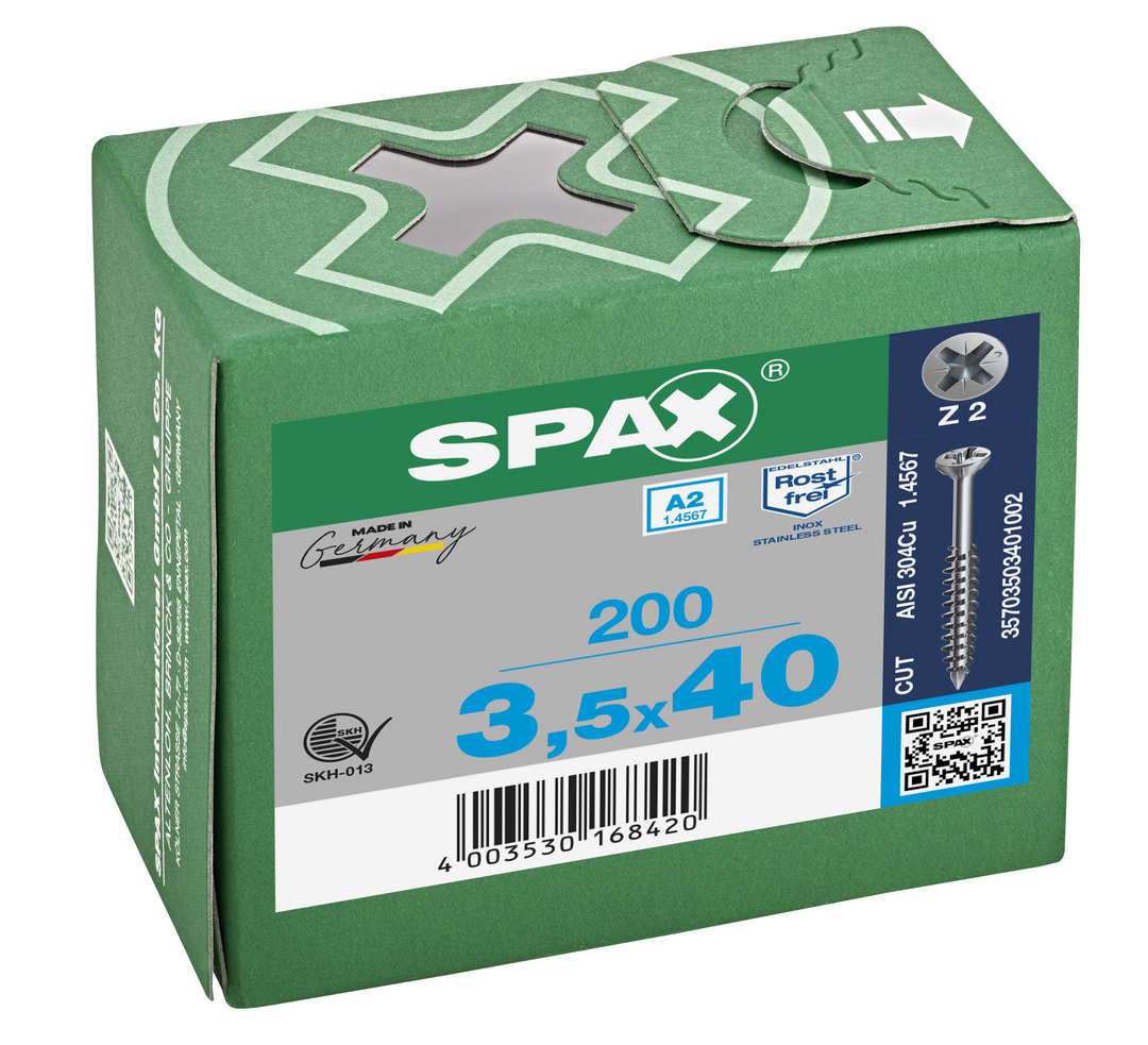 ABC Spax-Glasleistenschrauben A2 Senkkopf, Kreuzschlitz 3,5 x 40/23 mit Fräsrippen, SPAX CUT-Spitze, Teilgew
