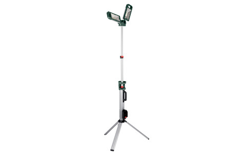 Stativleuchte mit zwei individuell verstellbaren Baustrahlern mit 5000 Lumen für flexibles, helles Licht im gesamten Arbeitsbereich