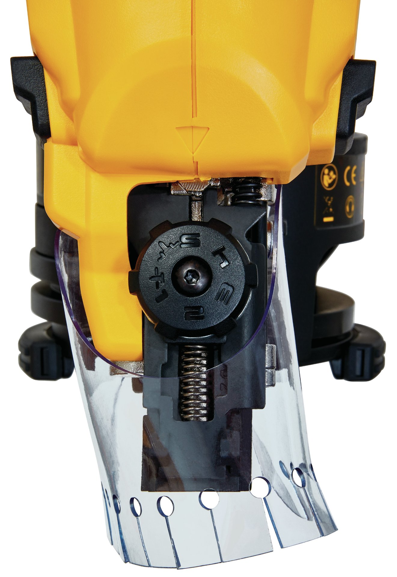 18 Volt Akku-Dachpappennagler (bürstenlos) – BasisversionProduktstärken:Erster Akku-Dachpappennagler für schnelle und sichere Befestigung von Dachpappe, aber auch für Montage von Dampfsperren, Schindeln, Traufblechen und vielen mehr sowie im Elementebau problemlos einsetzbarLeistungsstarker Motor für schnelles Eintreiben von Dachpappennägeln bis 45 mm LängeLängere Laufzeit pro Akku-Ladung sowie höhere Lebensdauer durch bürstenlose Motor-TechnologieIdeal für Serienbefestigungen durch sehr hohe SchußfolgePräzises Eintreiben der Nägel durch werkzeuglose Tiefeneinstellung mittels StellradSicherheitsschalter verhindert unbeabsichtigtes AuslösenPräzise Positionierung am Material durch oberflächenschonendes NasenstückVernickelte Nase für einfach Reinigung von TeerrückständenRobustes und schnell befüllbares Magazin, ideal für den täglichen BaustelleneinsatzOptimale Anpassung an die jeweilige Nagellänge durch dreifach verstellbaren Magazinboden verhindert Verkanten oder Verklemmen der NägelOptische Kontrolle der noch verfügbaren Anzahl an Nägel durch Sichtfenster im MagazinDurch reinen Akkubetrieb keine hohen Kosten für Gaskartuschen und WartungProblemloser Einsatz auch bei niedrigen Temperaturen durch AkkubetriebRobuster Treiber aus hochwertigem Material und langer LebensdauerReset-Hebel zum Lösen des Nageltreibers im Fall von verklemmten Nägeln im SchusskanalLED-Indikator mit Warnhinweis bei technischen Problemen oder zu geringer Akku-KapazitätÄußerst anwenderfreundlich dank niedriger Vibrationen, geringer Geräuschentwicklung sowie ergonomisch gummierten GriffbereichKompakte Abmessungen für problemlosen Einsatz an allen OrtenEinsetzbar mit allen 18 Volt XR- oder XR FLEXVOLT-Akkus jeder Ah-Klasse (nicht im Lieferumfang)Serienmäßig als Basistype (ohne Akkus und Ladegerät) optimal geeignet bei bereits vorhandenen 18 Volt XR- oder XR FLEXVOLT-Akkus oder für das 18 Volt DeWALT ‚Akku Plus‘-SystemLieferumfang:GürtelhakenT STAK-Box VITechnische Daten:Akku-Technologie: 18 Volt XR Li-IonAkku-Kompatibilität: Alle 18 Volt XR- und 54 Volt XR FLEXVOLT-Akkus jeweils jeder Ah-KlasseNageldurchmesser (mm): 3,05 - 3,4Nagellänge (mm): 19 - 45Magazinkapazität (Anzahl Nägel): 120Nageltyp: CoilnägelAuslösesicherung: Einzelauslösung mit SicherungsfolgeAnzahl an Nägeln pro Akku-Ladung (mit 2 bzw. 5 Ah-Akku): 500 bzw. 1.250Abmessungen (H x L x T in mm): 325 x 290 x 123Gewicht mit 2 bzw. 5 Ah-Akku: 3,3 bzw. 3,5 kgSchalldruckpegel LPA (dB(A)): 83Schallleistungspegel LWA (dB(A)): 94K (dB(A)): 3Vibration(m/s²) : < 2,5K (m/s²): 1,5Garantieumfang:DEWALT Garantie: 3 Jahre (bei Online-Registrierung)