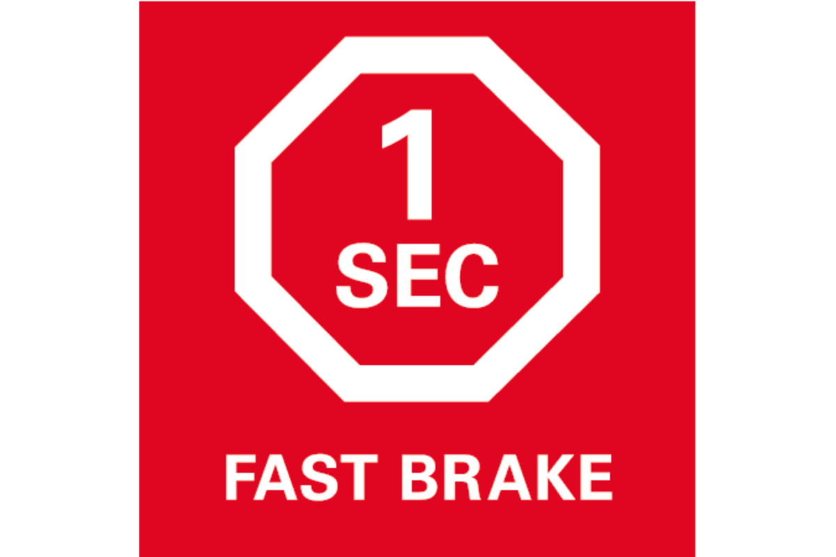 Hoher Anwenderschutz durch Auslaufbremse für schnellen Stopp des Einsatzwerkzeugs (< 1 sek)