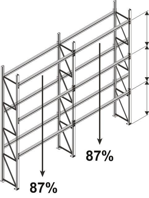 Die Fachlasten gelten bei gleichmäßiger Lastverteilung. Zusätzliche Fachebenen sind bis zur max. Feldlast möglich. Die angegebenen Feldlasten gelten für Regaleinheiten mit mindestens 4 Regalfeldern, bei einer Fachhöhe (Knicklänge) von 1000 mm.