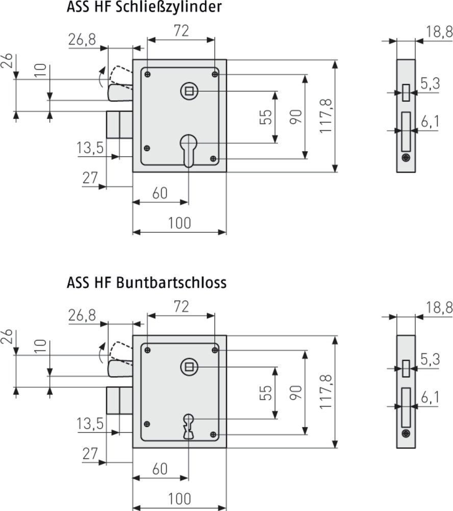 UNIVERSELLER EINSATZ Massiver Stahlriegel, robuste Mechanik: Das Aufschraubschloss ASS HF verriegelt mit hebender Falle. ABUS bietet Einsteckschlösser für vielseitige Einsatzmöglichkeiten an. Besonders geeignet in diesem Bereich sind Aufschraubschlösser. Diese werden nicht ins Innere eines Türblattes eingelassen, sondern auf einer Seite der Tür aufgeschraubt. Das ASS HF ist so ein Schloss. Es ist in der Ausführung für Türzylinder oder mit Buntbartschlüssel erhältlich. Das Schloss kann universell eingesetzt werden. Die Hebefalle, auch Schnapper genannt, hebt sich beim Betätigen des Griffs an, ermöglicht so größtmögliche Sicherheit.