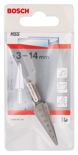 Blechschälbohrer HSS, Sechskantschaft, 3 - 14 mm, 60 mm, 1/4-Zoll