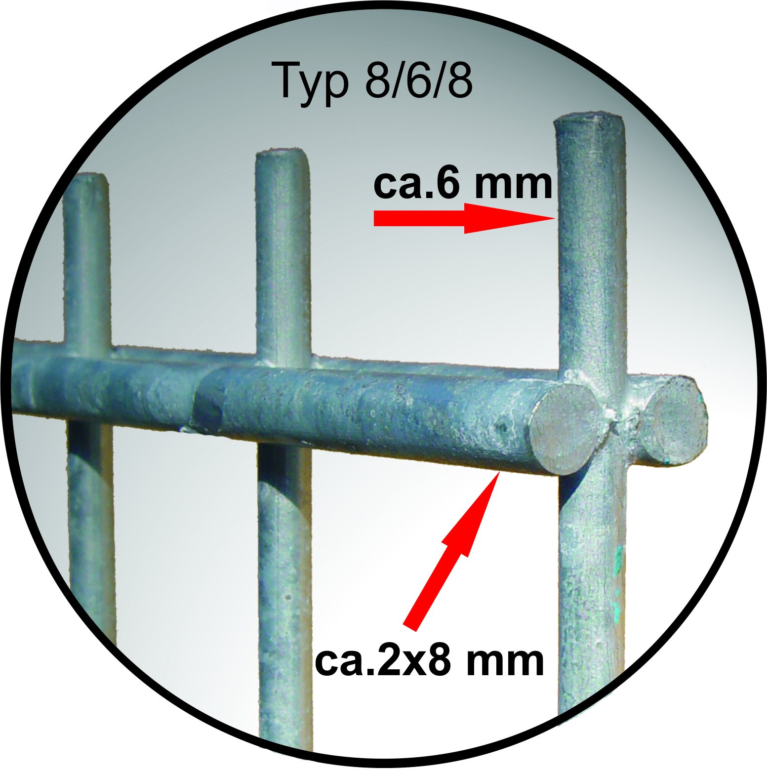 aus vorverz. Draht und RAL 7016 Anthrazit, schwere Ausführung 8/6/8, MW 50/200 mm