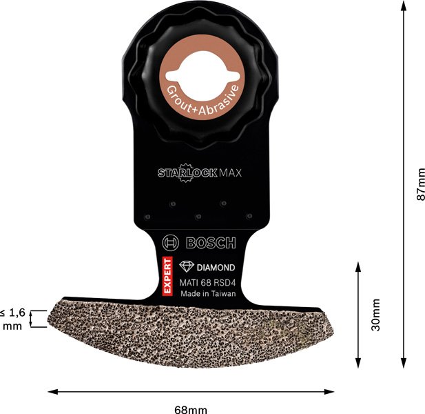 Hohe Lebensdauer in Fugenmörtel und weichen Fliesen! Spitzes Segmentsägeblatt für präzise Arbeiten bis in Ecken Das Entfernen der Fugenmasse zwischen den Fliesen ist eine Aufgabe, die Bad- und Kücheninstallateure regelmäßig durchführen müssen. Multifunktionswerkzeuge sind dafür ideal geeignet, aber manchmal ist es schwierig, in die Ecken oder um Armaturen herum zu gelangen. Mit dem EXPERT Corner Blade Blatt ist dies kein Problem. Es bietet nicht nur eine lange Lebensdauer und schnelle Entfernung des Mörtels, sondern erreicht auch problemlos Ecken. Das Bosch EXPERT Corner Blade für Multifunktionswerkzeuge ist das perfekte Zubehör für Fliesenleger und Bad- oder Kücheninstallateure. Aufgrund seiner extrem langen Lebensdauer und Vielseitigkeit sollte es in deinem Werkzeugkasten ganz oben liegen. Außergewöhnlich robuste Schneidekante mit Bosch Diamond Technology