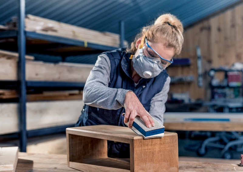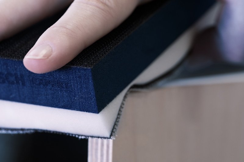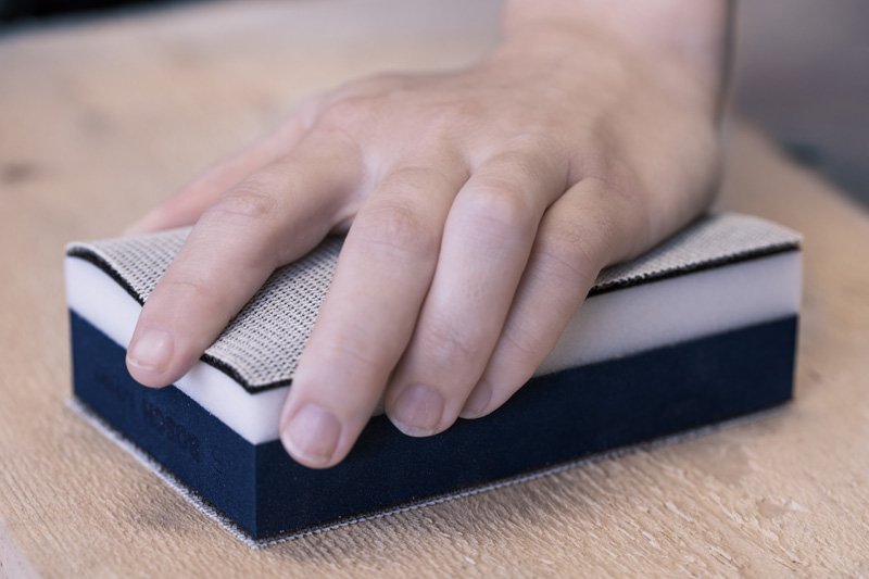 3-in-1 zum Schleifen von ebenen Flächen, Kurven und Profilen! Die ergonomische Form sorgt für einen festen und einfachen Halt Beim Schleifen von Werkstücken mit ebenen Flächen sowie Rundungen und Kanten benötigst du verschiedene Schleifblöcke, um den richtigen für die zu bearbeitende Form zu finden. Wir haben die harte und die weiche Seite des EXPERT M480 Dual Density-Schleifblocks miteinander verbunden, um das Ganze zu vereinfachen. Du kannst damit sowohl Oberflächen staubarm nass und trocken schleifen, als auch Kanten und Rundungen. Der EXPERT M480 Dual Density-Schleifblock ist effektives Zubehör für Schreiner, Maler und Trockenbauer, die einen vielseitigen, staubarmen Schleifblock zum Schleifen von Oberflächen, Konturen und Kanten benötigen. Dual Density: harte und weiche Seite zum Schleifen von Flächen, Rundungen und Profilen