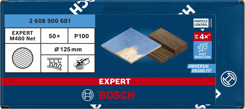 Schleiftellerschoner sorgen für noch weniger Staub und mehr Effizienz beim Schleifen von Holz, Farbe und Trockenbauwänden! Staub wird durch offene Netzstruktur abgesaugt Staub stellt beim Schleifen eines der Hauptprobleme dar. Er setzt dein Schleifpapier zu, wodurch dieses praktisch unbrauchbar wird. Er bedeckt alles im Raum und durchdringt das ganze Haus. Darum haben wir die Bosch Particle Control-Technologie entwickelt – für staubreduziertes Arbeiten auf einem neuen Leistungsniveau. Es war nicht einfach, Staub beim Schleifen zu reduzieren, aber wir haben eine Lösung gefunden. Dieses Bosch EXPERT M480 Schleifnetz verwendet unsere Particle Control-Technologie, um die Staubmenge in der Luft auf ein Minimum zu reduzieren. Hocheffiziente Staubabsaugung mit Bosch Particle Control