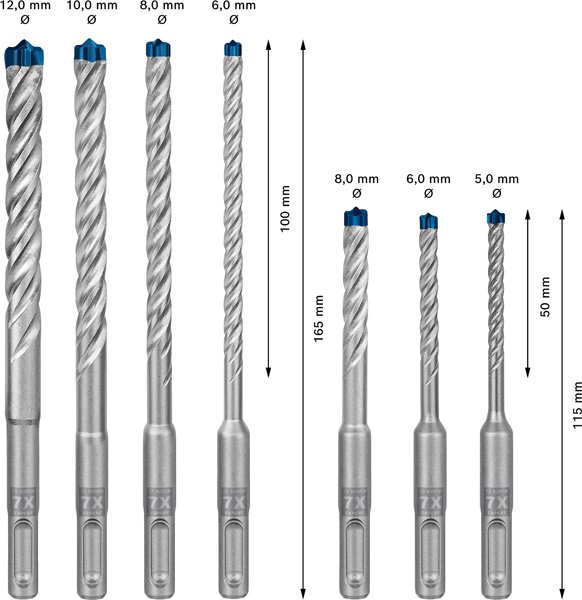 EXPERT SDS plus-7X Hammerbohrer-Set, 5/6/6/8/8/10/12 mm, 7-tlg