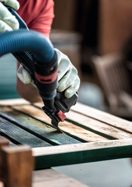 Hohe Lebensdauer beim Schleifen in schmalen Zwischenräumen! Einfache Reinigung garantiert konstant hohe Leistung Enge Zwischenräume in Terrassen, Fensterläden oder alten Treppen lassen sich nur schwer von Hand schleifen. Häufig bekommt man auch einen Splitter in die Finger. Mit dem EXPERT Sanding Finger ist diese Art des Schleifens ganz einfach: Das dünne, spitze Blatt passt in die engsten Räume und schleift schnell und effektiv dank dem hochwertigen Carbide-Korn. Bosch EXPERT Sanding Fingers bieten für alle, die engste Zwischenräume schleifen müssen, eine große Zeitersparnis. Die groben, offen gestreuten Körner des RT4 (Körnung 40) entfernen Material wie Farbe mit minimaler Zusetzung des Sanding Fingers. Überragende Lebensdauer dank Bosch Carbide Technology