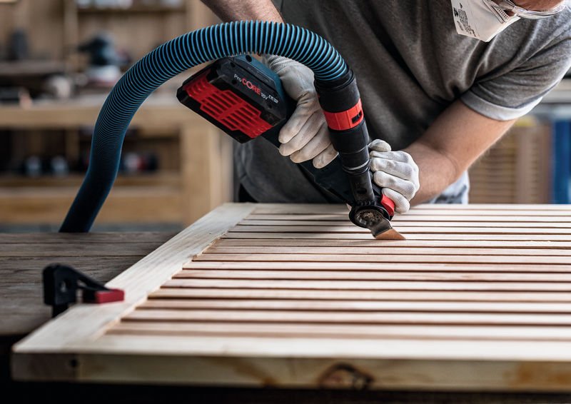 Hohe Lebensdauer beim Schleifen in schmalen Zwischenräumen! Einfache Reinigung garantiert konstant hohe Leistung Enge Zwischenräume in Terrassen, Fensterläden oder alten Treppen lassen sich nur schwer von Hand schleifen. Häufig bekommt man auch einen Splitter in die Finger. Mit dem EXPERT Sanding Finger ist diese Art des Schleifens ganz einfach: Das dünne, spitze Blatt passt in die engsten Räume und schleift schnell und effektiv dank dem hochwertigen Carbide-Korn. Bosch EXPERT Sanding Fingers bieten für alle, die engste Zwischenräume schleifen müssen, eine große Zeitersparnis. Die groben, offen gestreuten Körner des RT4 (Körnung 40) entfernen Material wie Farbe mit minimaler Zusetzung des Sanding Fingers. Überragende Lebensdauer dank Bosch Carbide Technology