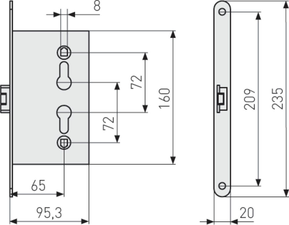 Einsteckschloss ES SI PZ LR Z 65 72 20 SB