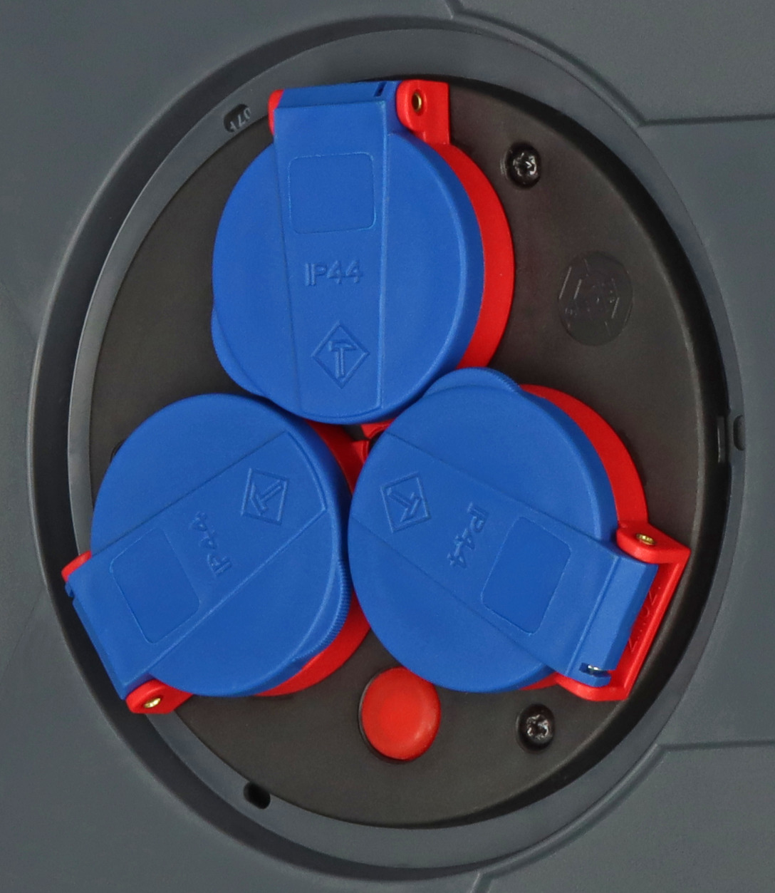• 3 Schutzkontakt-Steckdosen, spritzwassergeschützt, mit selbstschließenden Deckeln.