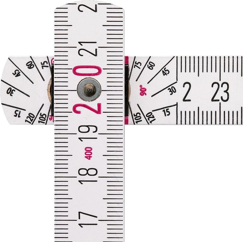• Durch die eingelassenen Gelenke entsteht im ausgeklappten Zustand eine durchgehend gerade Kante, der Maßstab ist so auch als Lineal für eine durchgezogene Anreißlinie zu verwenden