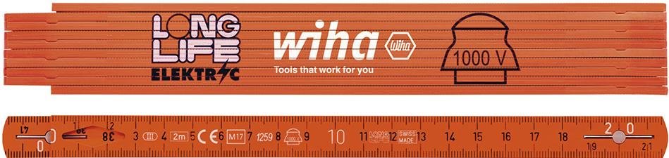 Gliedermaßstab Kunststoff2mx15mm orange Longlife electric Wiha