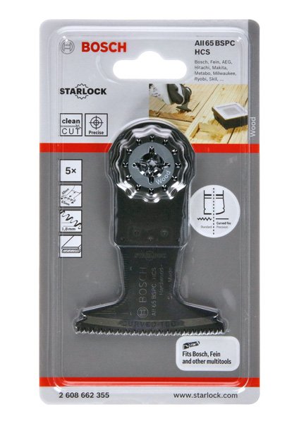 Das Tauchsägeblatt Starlock AII 65 BSPC ermöglicht breite und saubere Schnitte in Hartholz. Seine dreidimensionale japanische Zahnanordnung besteht aus scharfgeschliffenen Zähnen, die ideal für das Sägen von Hartholz geeignet sind. Diese Zahnanordnung minimiert die Wärmeentwicklung und ermöglicht ausrissfreie Schnitte ohne Auszackung oder Hitzespuren. Die flache Blattgestaltung reduziert Lateralschwingung und ermöglicht mittels direkter Kraftübertragung präzise Schnitte. Dieses Produkt wird verwendet für das Tauchsägen in Hartholz oder Holzbrettern sowie das Sägen von Holzpaneelen. Die abgerundete Blattspitze (Curved-Tec) ermöglicht präzise und glatte Tauchschnitte. Das Starlock-Aufnahmesystem ermöglicht einen schnellen Blattwechsel ohne Blattberührung in drei Sekunden. Das Aufnahmesystem ermöglicht durch seine dreidimensionale enge Passung maximale Kraftübertragung zwischen Maschine und Zubehör.