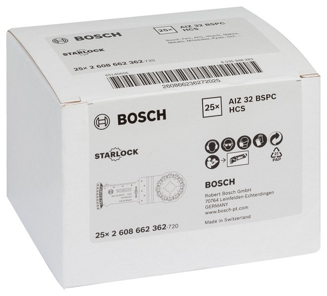 Das Tauchsägeblatt Starlock AIZ 32 BSPC ermöglicht saubere Schnitte in Hartholz. Seine dreidimensionale japanische Zahnanordnung besteht aus scharfgeschliffenen Zähnen, die ideal für ausrissfreies Sägen geeignet sind. Diese Zahnanordnung minimiert die Wärmeentwicklung und ermöglicht sehr saubere Schnitte ohne Auszackung oder Hitzespuren. Das robuste Starlock-Aufnahmesystem reduziert Lateralschwingung und ermöglicht mittels direkter Kraftübertragung präzise Schnitte. Dieses Produkt wird verwendet für das Tauchsägen in Hartholz, das Sägen von Aussparungen in Möbelbauteile sowie das Sägen von Holzpaneelen. Die abgerundete Blattspitze (Curved-Tec) ermöglicht präzise und glatte Tauchschnitte. Das Starlock-Aufnahmesystem ermöglicht einen schnellen Blattwechsel ohne Blattberührung in drei Sekunden. Das Aufnahmesystem ermöglicht durch seine dreidimensionale enge Passung maximale Kraftübertragung zwischen Maschine und Zubehör.