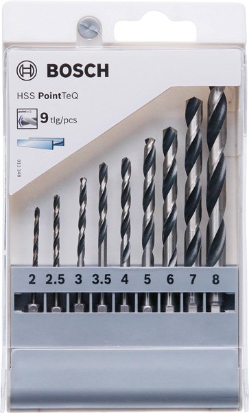HSS PointTeQ Sechskantbohrer-Set, 9-tlg., 2–8 mm