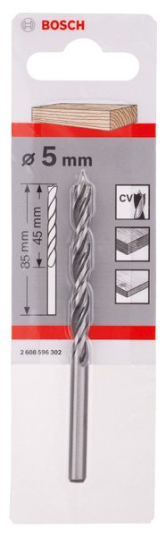 Produktinformationen "Holzspiralbohrer Standard, 5 x 52 x 86 mm, d 5 mm"