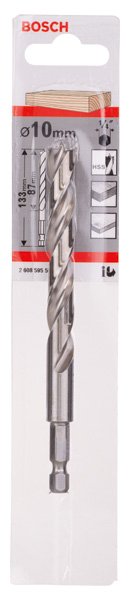 Produktinformationen "Holzspiralbohrer mit 1/4-Zoll Sechskantschaft, 10 x 87 x 133 mm"