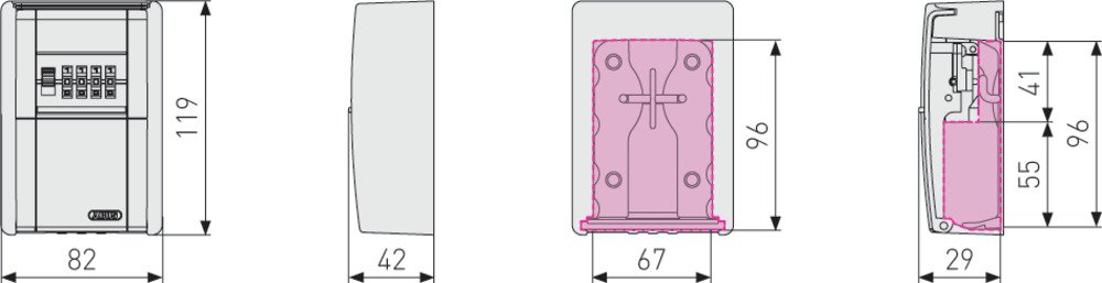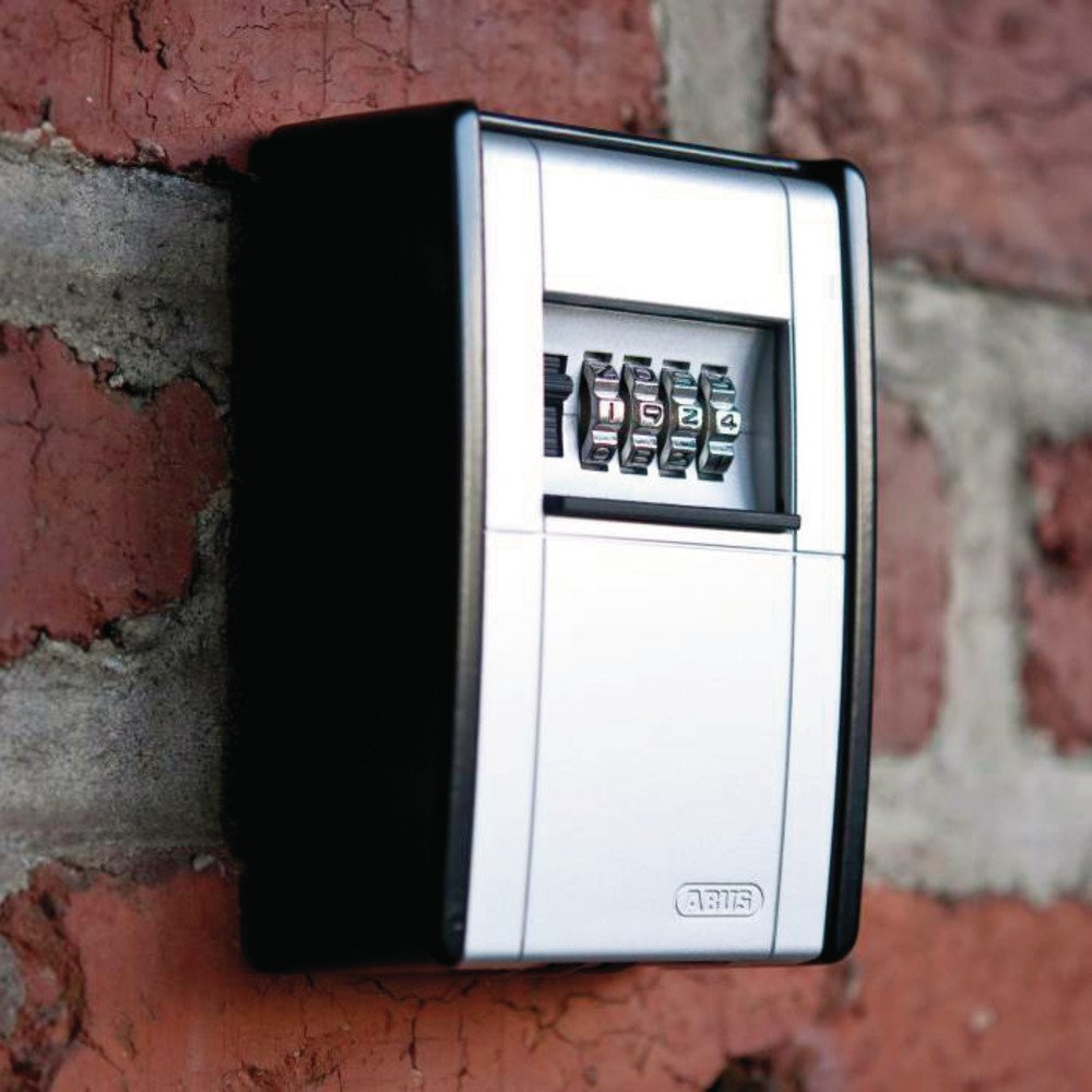 20 SCHLÜSSEL ODER 14 PLASTIKKARTEN Unsere KeyGarage™ 787 mit Zahlencode ist sehr gut geeignet, um Schlüsseln und Plastikkarten sicher aufzubewahren und anderen Personen zur Verfügung zu stellen. Schlüssel unter der Fußmatte oder dem Blumentopf verstecken? Das ist uns definitiv nicht sicher genug! Mit dieser KeyGarage™ lassen sich Ihre Schlüssel und Karten bequem und sicher vor Gelegenheitsdiebstahl verstauen. Im Inneren des stabilen Metallgehäuses haben bis zu 20 Schlüssel oder 14 Karten Platz. Bei Bedarf können Sie die Schlüssel außerdem an zwei Schlüsselhaken aufhängen. Wir empfehlen Ihnen, die 787 KeyGarage™ im geschützten Außenbereich zu montieren. Öffnen lässt sie sich mit einem vierstelligen Zahlencode, den Sie individuell festlegen können. Somit haben nur autorisierte Personen Zugang – was sich insbesondere bei häufig wechselnden Personengruppen anbietet, wie Handwerker, Feriengäste, Fahrzeugverleiher, mobile Pflegedienste und Ähnliches.