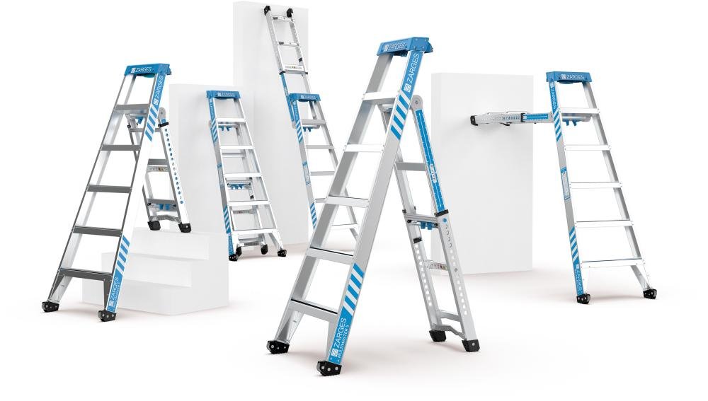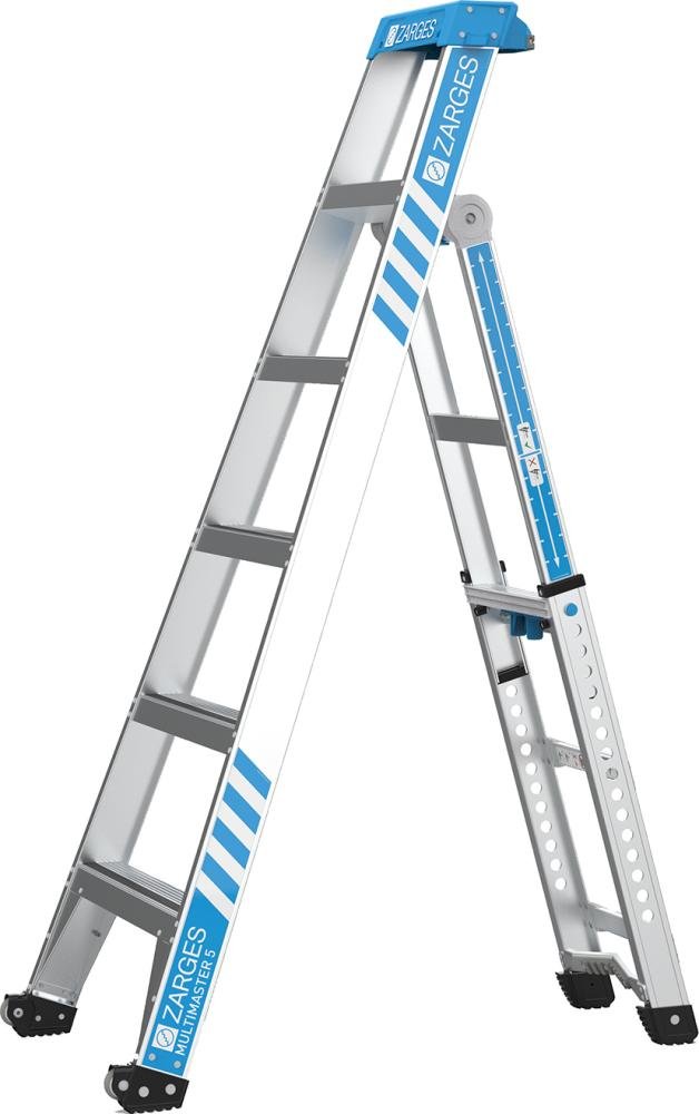 Hinweis: 5 Leitern in einer: (Stehleiter, treppengängige Stehleiter, Anlegeleiter im Off-Set-Modus, Anlegeleiter und ausgefahrene Anlegeleiter).