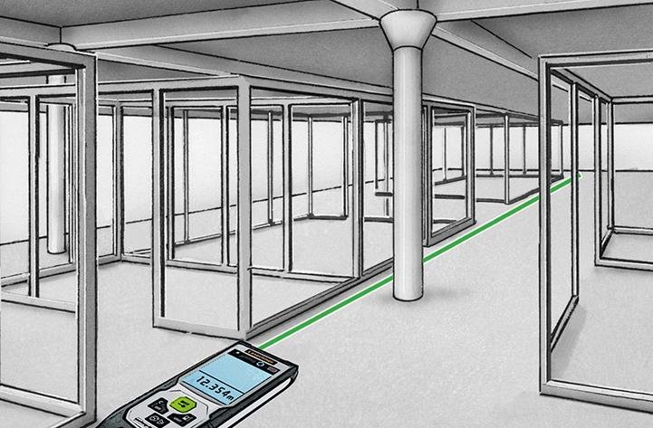 • Punktgenaues Messen mit Laser zur Ermittlung von Längen, Flächen und Volumen