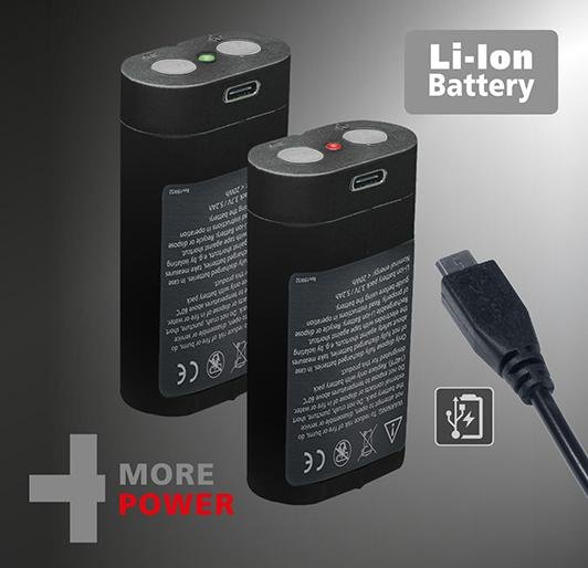Lieferung: Mit 2 Li-Ion-Akkupacks 3,7 V/5,2 Ah, Netzteil/Ladegerät 5 V/DC/2A, USB-C-Kabel, magnetischer Klemm- und Wandhalterung und Tragekoffer.