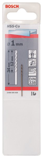 Metallbohrer HSS-Co, DIN 338, 1 x 12 x 34 mm, 1er-Pack