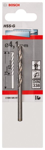 Metallbohrer HSS-G, DIN 338, 4,1 x 43 x 75 mm, 1er-Pack