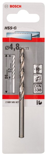 Metallbohrer HSS-G, DIN 338, 4,8 x 52 x 86 mm, 10er-Pack