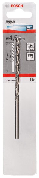 Metallbohrer HSS-G, DIN 340, 4,5 x 82 x 126 mm, 1er-Pack