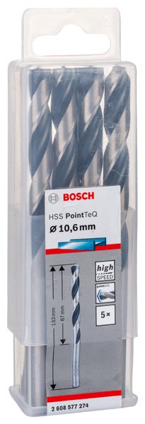 Metallspiralbohrer HSS PointTeQ, DIN 338, 10,6 mm, 5er-Pack