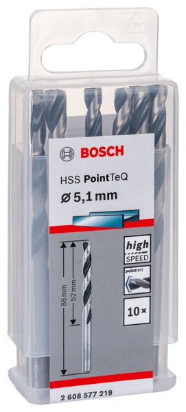 Metallspiralbohrer HSS PointTeQ, DIN 338, 5,1 mm, 10er-Pack