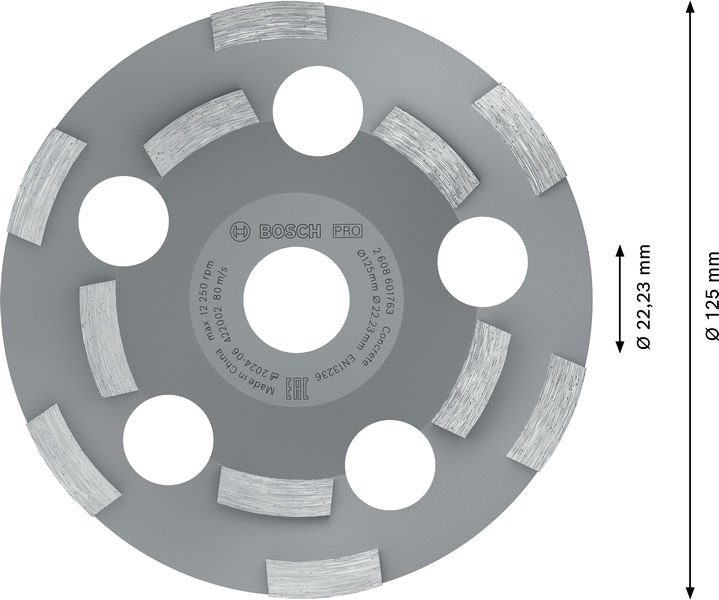 Lange Lebensdauer beim Schleifen von abrasiven Materialien! Hochwertiges Diamantkorn und Matrix für Langlebigkeit und Präzision Bauarbeiter müssen häufig große Ziegelsteine und andere abrasive Oberflächen schleifen. Mit der speziellen PRO Abrasive Topfscheibe bekommst du ein Zubehör an die Hand, das effektiv arbeitet und lange hält. Der hochwertige Diamantbesatz in einer Premium-Metallmatrix sorgt für eine überzeugende Leistung und Haltbarkeit der PRO Abrasive Topfscheibe. Sie ist präzise ausbalanciert, damit wenig Vibrationen entstehen und Profis effektiv arbeiten können.