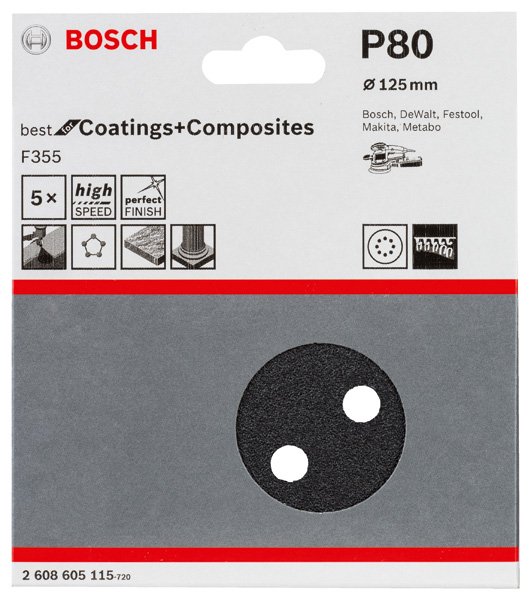 PRO F355 Schleifblatt, 125 mm, 80, 5-tlg.