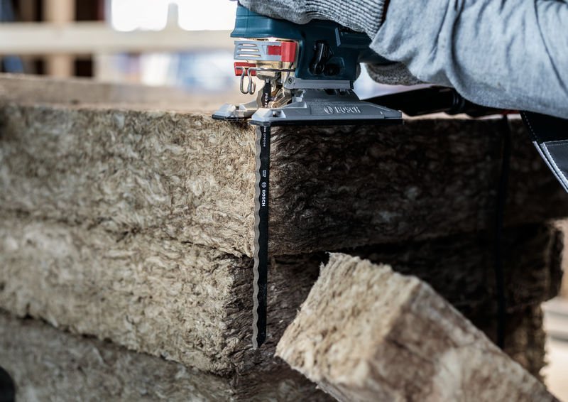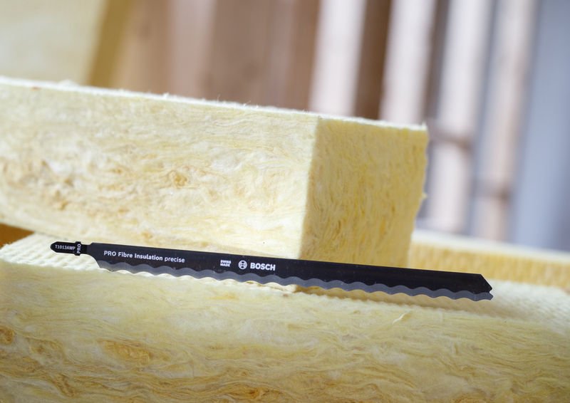 Präzises Schneiden von Mineralfaserdämmstoffen! Das dickere Blatt bietet zusätzliche Stabilität für einen präzisen Schnitt Das präzise Schneiden von Dämmstoffen wie Steinwolle oder Glaswolle verlangt nach einem speziellen Stichsägeblatt. Das PRO Fibre Insulation precise T1013AWP ist die Lösung. Es wurde entwickelt, damit du präzise, saubere und gerade Schnitte in diesen Materialien erzielen kannst. Das PRO Fibre Insulation precise T1013AWP Stichsägeblatt ist eine gute Wahl für Handwerker, die mit ihren GST 150 und 160 Stichsägen von Bosch gerade, präzise Schnitte in nicht-synthetische mineralische Dämmstoffe machen müssen. Es ist dicker als Standardblätter und schneidet genau im gewünschten Winkel. Die Schnittkante mit Wellenschliff ist sehr scharf, damit du sauber und mühelos durch Stein- und Glaswolle schneiden kannst. Das Blatt ist extra lang, sodass du Materialien mit einer Dicke von bis zu 150 mm schneiden kannst.