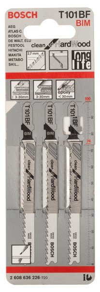 Herausragende Lebensdauer in Hartholz! Bi-Metall Blatt: Kombiniert harte Zähne mit flexiblem Blattkörper Bist du Tischler und auf der Suche nach einem Stichsägeblatt zum Schneiden von Hartholz? Ein Stichsägeblatt, das gerade, saubere Schnitte liefert? Mit dem PRO Hardwood clean T101BF kannst du diese Arbeit erledigen. Das PRO Hardwood clean T101BF Stichsägeblatt wurde aus BI-Metall hergestellt: Es verfügt über eine Zahnleiste aus Schnellarbeitsstahl (HSS), die mit einem Körper aus Kohlenstoffstahl (HCS) verbunden ist, um sicherzustellen, dass du Hartholz problemlos bearbeiten kannst. Das Blatt hat eine konische Form und eine feine Zahnteilung für saubere Schnitte, ohne hängen zu bleiben. Schneide damit massives Hartholz mit einer Dicke zwischen 3 und 30 mm.