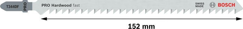Herausragende Lebensdauer in Hartholz! Bi-Metall Blatt: Kombiniert harte Zähne mit flexiblem Blattkörper Mit kürzeren Stichsägeblättern kannst du Werkstücke aus massivem Hartholz mit einer Dicke von bis zu 100 mm nicht bearbeiten. Deshalb haben wir das PRO Hardwood fast T344DF entwickelt. Das Blatt ist 152 mm lang, was bedeutet, dass du damit schnelle, gerade Schnitte in dickerem Hartholz erzielen kannst. Das PRO Hardwood fast T344DF Stichsägeblatt aus BI-Metall (BIM) verfügt über eine Zahnleiste aus Schnellarbeitsstahl (HSS), die mit einem Körper aus Kohlenstoffstahl (HCS) verbunden ist. Dadurch wird sichergestellt, dass es problemlos massives Hartholz schneiden kann – immer und immer wieder. Das Stichsägeblatt verfügt über scharfe, geschränkte Zähne für schnelle Schnitte.
