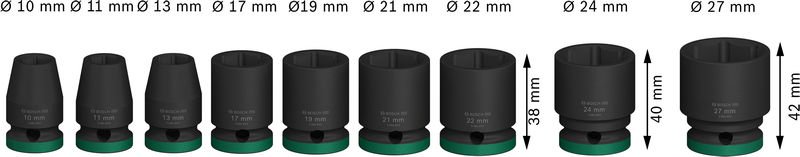 | Schlüsselweite mm: | 10, 11, 13, 17, 19, 21, 22, 24, 27 |
