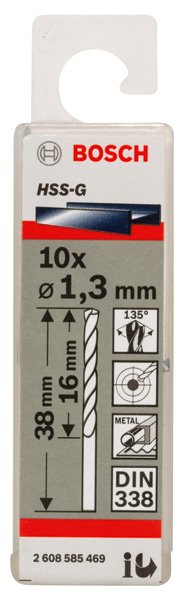 PRO Metal HSS-G Spiralbohrer, 1,3 x 16 x 38 mm, 10-tlg.
