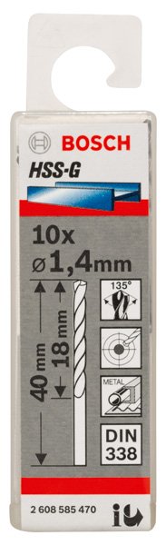 PRO Metal HSS-G Spiralbohrer, 1,4 x 18 x 40 mm, 10-tlg.