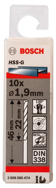 PRO Metal HSS-G Spiralbohrer, 1,9 x 22 x 46 mm, 10-tlg.