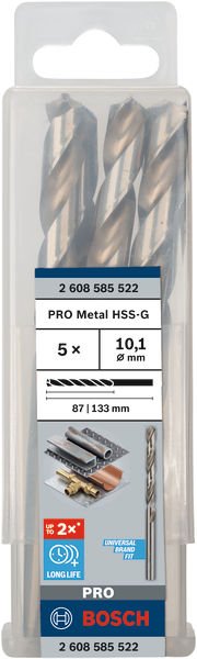 PRO Metal HSS-G Spiralbohrer, 10,1 x 87 x 133 mm, 5-tlg.